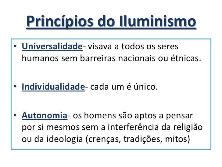 3. 3. • Os Iluministas defendiam a liberdade de pensamento e eram contrários aos dogmas religiosos e ao absolutismo• O pensamento cientifico era caracterizado como o mais importante entre as formas de pensar.