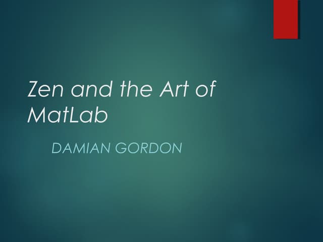 2. 2. 1 Introduction Matlab is a prototyping environment, meaning it focuses on the ease of development with language flexibility, interactive debugging, and other conveniences lacking in performance-oriented languages like C and Fortran. While Matlab may not be as fast as C, there are ways to bring it closer. Disclaimer This is not a beginner’s tutorial to Matlab, but a tutorial on performance. The methods discussed here are generally fast, but no claim is made on what is fastest. Use at your own risk. Before beginning our main topic, let’s step back for a moment and ask ourselves what we really want. Do we want the fastest possible code?—if so, we should switch to a performance language like C. Probably more accurately, we want to spend less time total from developing, debugging, running, and until finally obtaining results. This section gives some tips on working smart, not hard. M-Lint Messages In more recent versions of Matlab, the integrated editor automatically gives feedback on possible code errors and suggested optimizations. These messages are helpful in improving a program and in learning more about Matlab. for k = 1:NumTrials r = rand; x(k) = runsim(r); end hist(x); % Plot histogram of simulation outputs x might be growing inside a loop. Consider preallocating for speed. Hold the mouse cursor over ::::::::::::::: underlined code to read a message. Or, see all M-Lint messages at once with Tools → M-Lint → Show M-Lint Report. Organization ˆ Use a separate folder for each project. A separate folder for each project keeps related things together and simplifies making copies and backups of project files. ˆ Write header comments, especially H1. The first line of the header comment is called the H1 comment. Type help(cd) to get a listing of all project files and their H1 comments. 1
