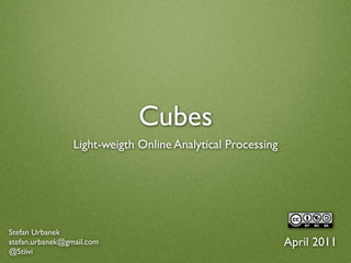 1. 1. Cubes Light-weigth Online Analytical Processing Stefan Urbanek stefan.urbanek@gmail.com April 2011 @Stiivi