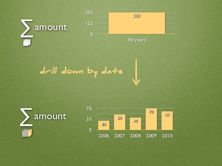 19. 19. 250 250 ∑ amount 125 0 All years drill down by date ∑ 70 70 amount 35 50 40 60 30 0 2006 2007 2008 2009 2010