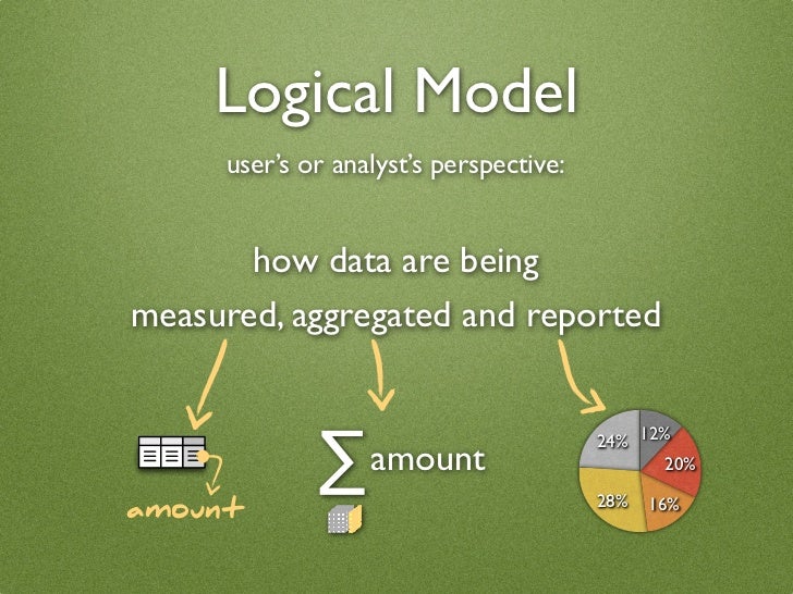 23. 23. Logical Model user’s or analyst’s perspective: how data are being measured, aggregated and reported amount ∑ amount 24% 12% 28% 20% 16%