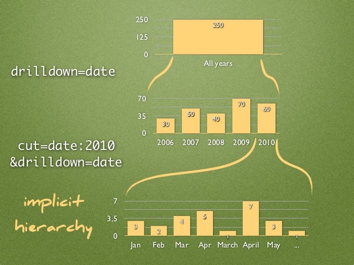 44. 44. 250 250 125 0 All years drilldown=date 70 70 60 35 50 40 30 0 cut=date:2010 2006 2007 2008 2009 2010 &drilldown=date implicit 7 7 3,5 5 4 hierarchy 0 3 2 1 3 1 Jan Feb Mar Apr March April May ...