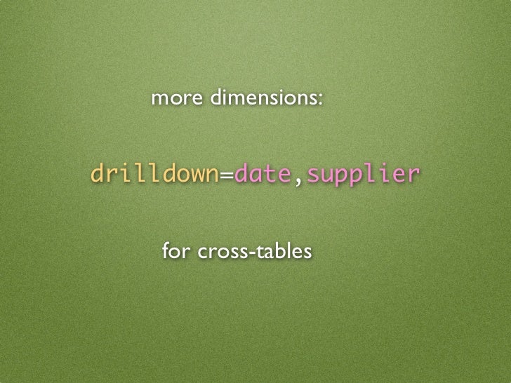 46. 46. more dimensions: drilldown=date,supplier for cross-tables