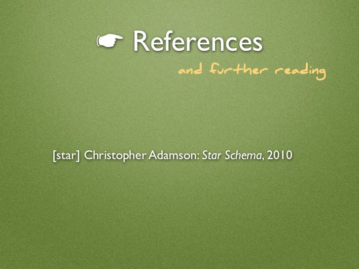 61. 61. ☛ References and further reading [star] Christopher Adamson: Star Schema, 2010