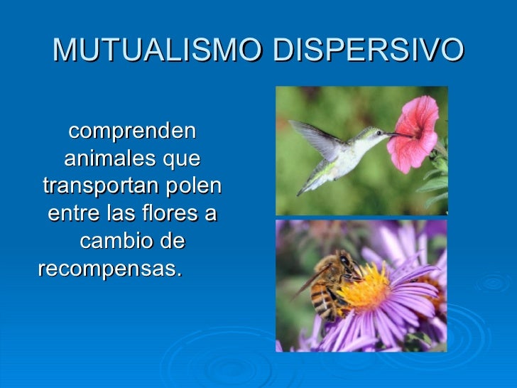 6. 10. MUTUALISMO DISPERSIVO <ul><li>comprenden animales que transportan polen entre las flores a cambio de recompensas . </li></ul>