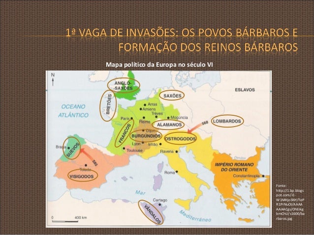 5. 5. Mapa político da Europa no século VI Fonte: http://1.bp.blogs pot.com/-EW1MHjoSNY/TeP R1PrNuOI/AAAA AAAACgs/OhEikg bmChU/s1600/ba rbaros.jpg