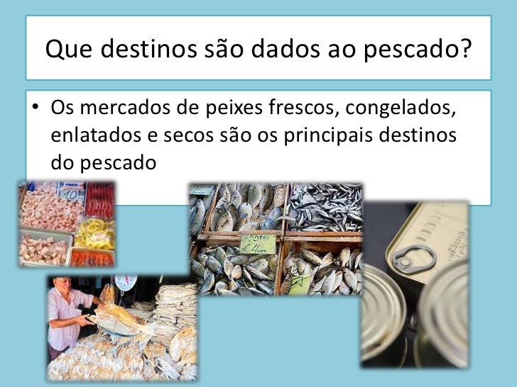 11. 11. Que destinos são dados ao pescado?<br />Os mercados de peixes frescos, congelados, enlatados e secos são os principais destinos do pescado <br />
