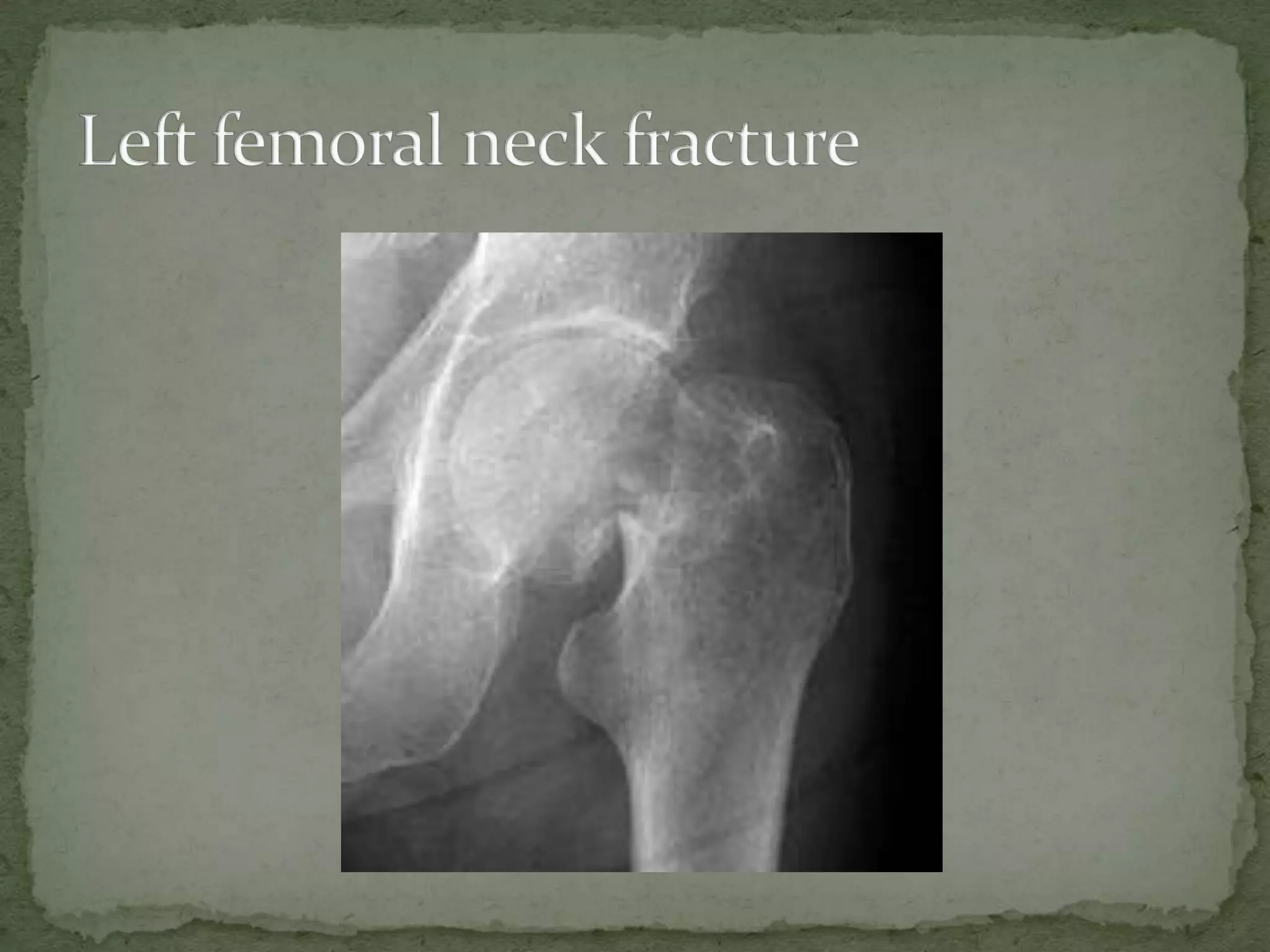 A 78-year-old woman fell at home and presented with left hip pain. On examination, her left hip was tender to touch and externally rotated and shortened, consistent with a femoral neck fracture. She will need pain control, evaluation for potential medical causes of the fall, orthopedic consultation, and operative management given the risks of increased mortality associated with delays in surgical repair for hip fractures in elderly patients.