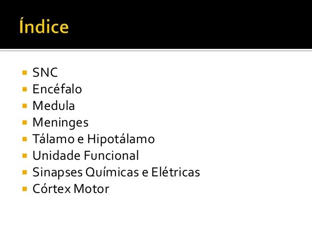 Slide utilizado em uma aula de Sistema Nervoso Central (SNC)