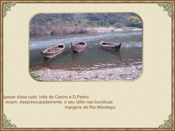 8. 8. Apesar disso tudo, Inês de Castro e D.Pedro viviam, despreocupadamente, o seu idílio nas bucólicas margens do Rio Mondego.