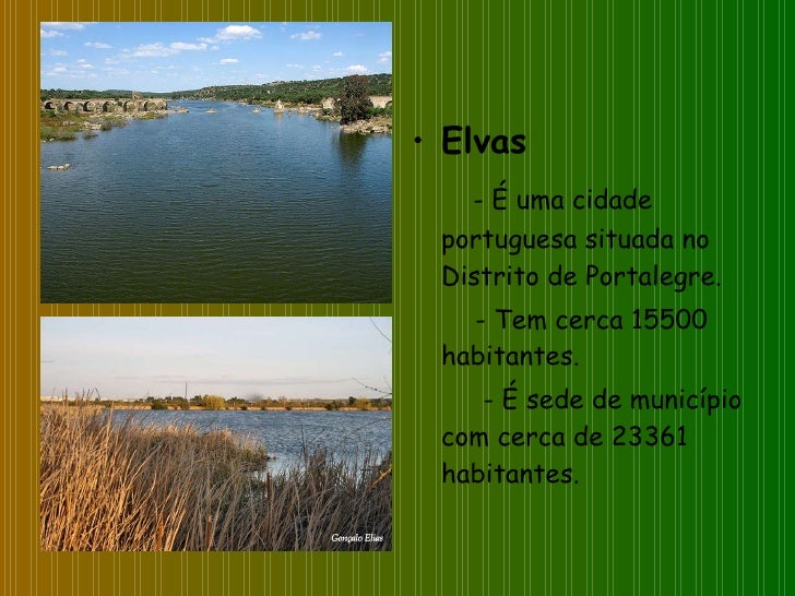 45. 45. <ul><li>Elvas </li></ul><ul><li>- É uma cidade portuguesa situada no Distrito de Portalegre. </li></ul><ul><li>- Tem cerca 15500 habitantes. </li></ul><ul><li>- É sede de município com cerca de 23361 habitantes. </li></ul>