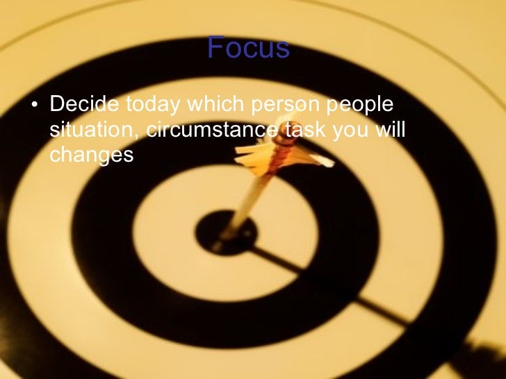 19. 26. Focus <ul><li>Decide today which person people situation, circumstance task you will changes </li></ul>