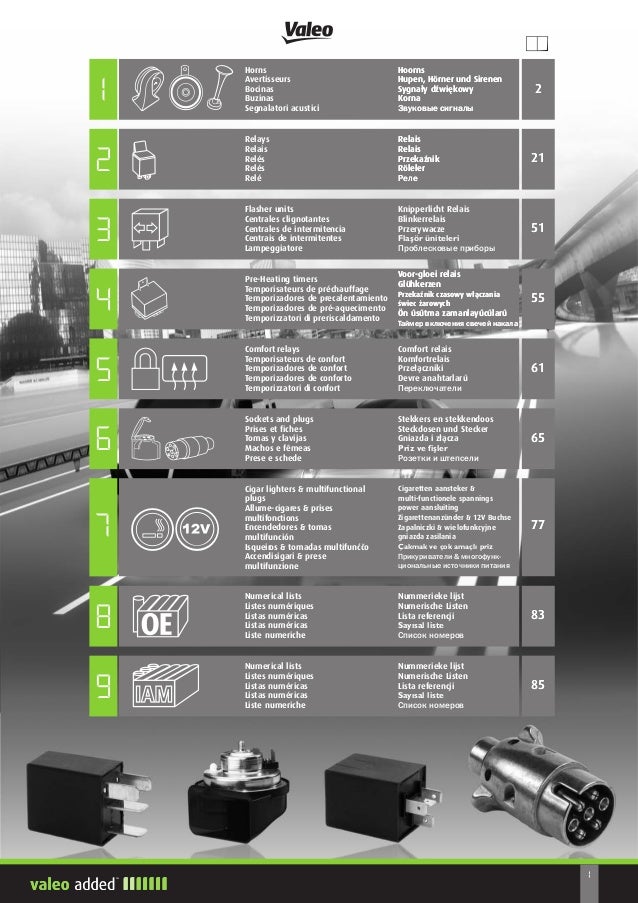 Valeo, the one stop shop supplier in electrical accessories: Valeo supplies the independent aftermarket with an extensive range of electrical accessories such as horns, relays, flasher units, pre-heating timers, comfort relays, socket &plugs and cigar lighters & multifunctional plugs for passenger cars and light commercial vehicles.