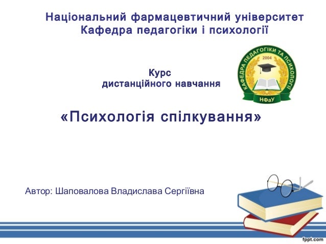 1. 1. Національний фармацевтичний університет Кафедра педагогіки і психології Курс дистанційного навчання «Психологія спілкування» Автор: Шаповалова Владислава Сергіївна