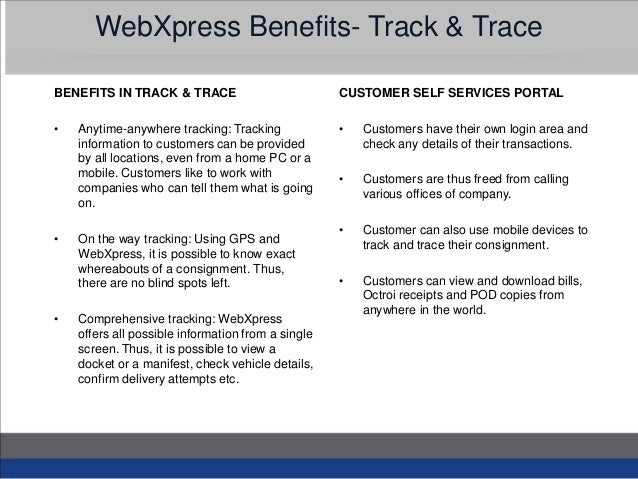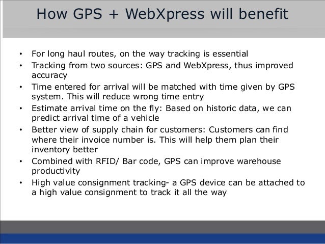 GPS+WebXpress benefits: for long haul routes, on the way tracking is essential