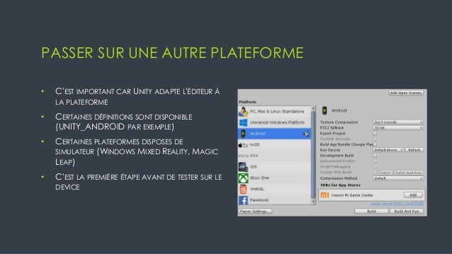 Slides utilisées lors du meetup Unity Lyon #4 à Wanadev. On parle ici de gestion de projet multiplateforme. Comme répondre aux problématiques de chaque plateformes sur le même projet ?