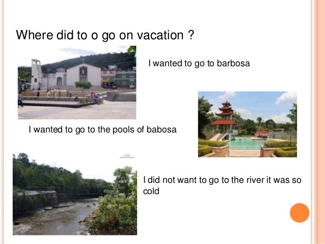 2. 2. Where did to o go on vacation ? I wanted to go to barbosa I wanted to go to the pools of babosa I did not want to go to the river it was so cold
