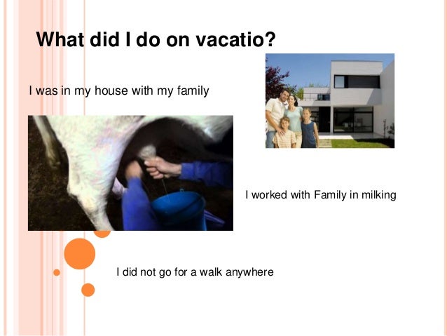 3. 3. What did I do on vacatio? I was in my house with my family I worked with Family in milking I did not go for a walk anywhere