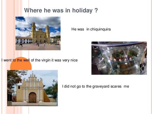 4. 4. Where he was in holiday ? He was in chiquinquira I went to the well of the virgin it was very nice I did not go to the graveyard scares me