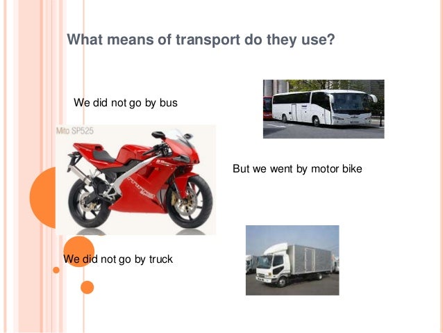5. 5. What means of transport do they use? We did not go by bus But we went by motor bike We did not go by truck