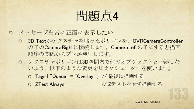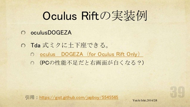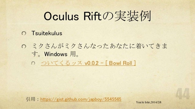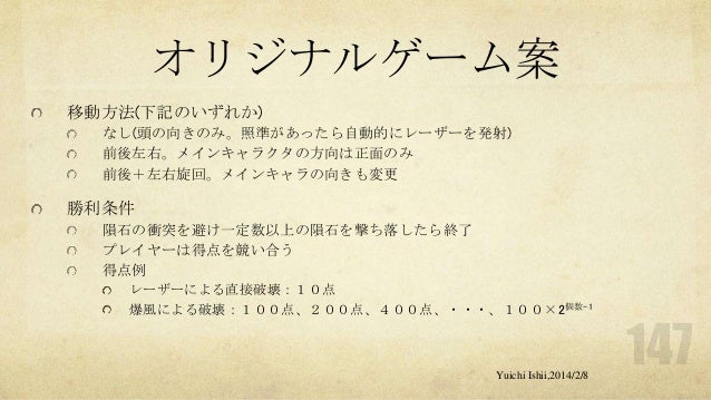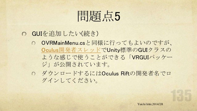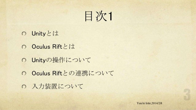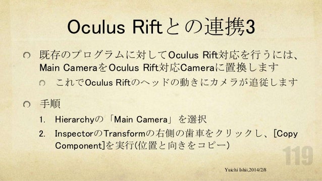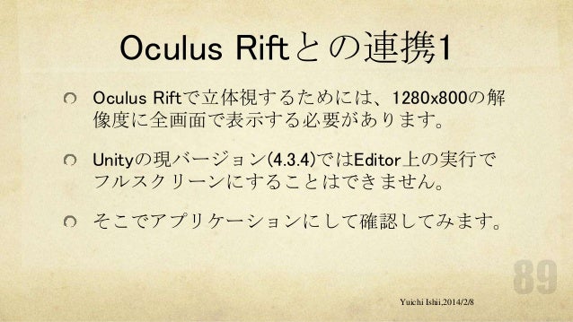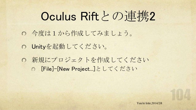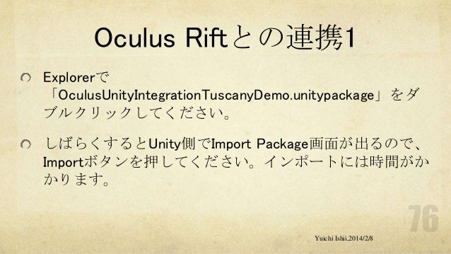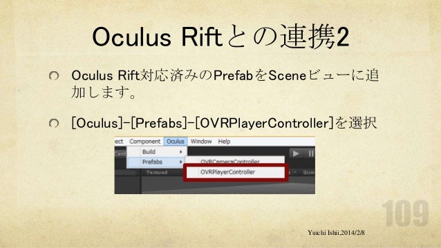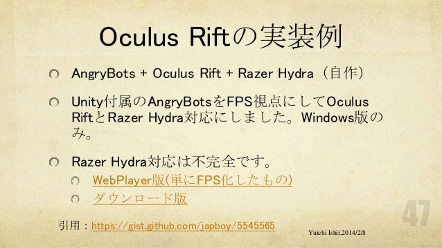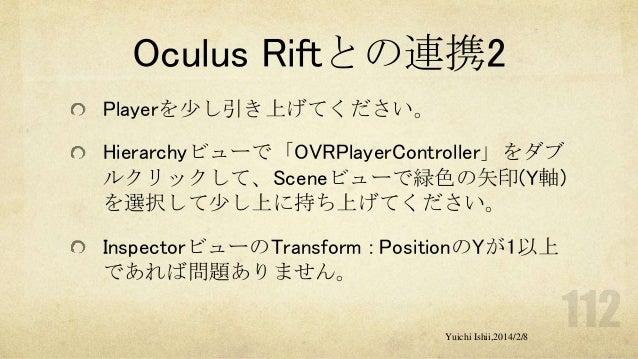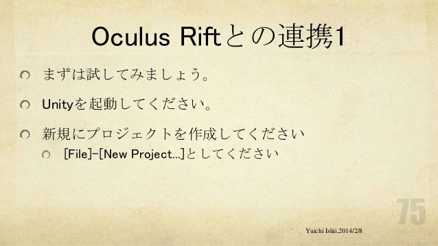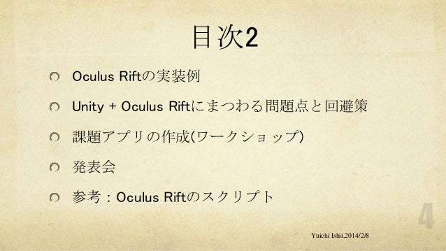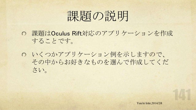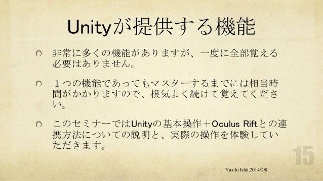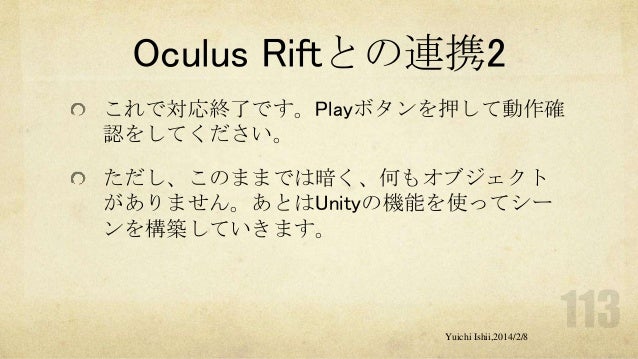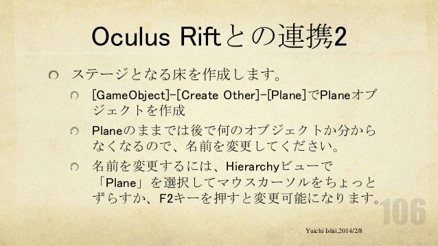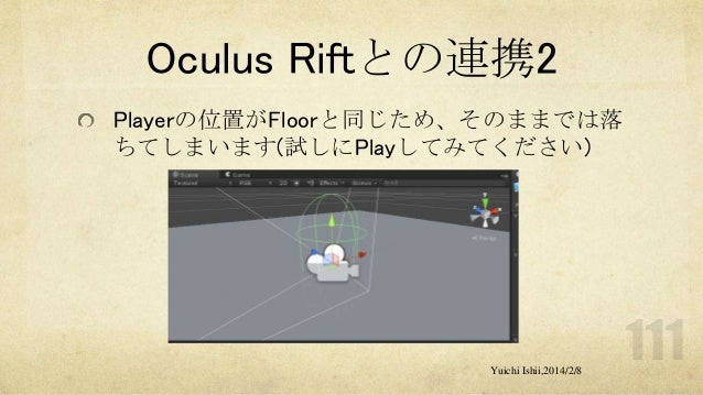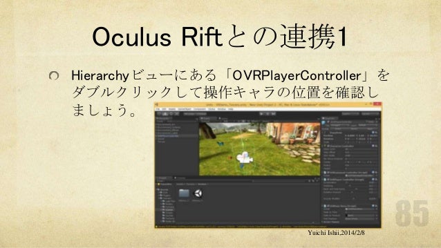 UnityおよびOculus Riftの初心者の方を対象に簡単な体験型3Dゲーム開発をするワークショップです。