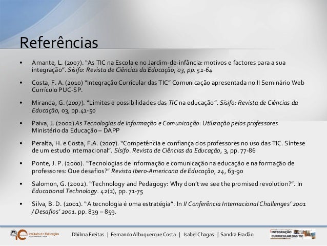 10. 10. Dhilma Freitas | FernandoAlbuquerqueCosta | Isabel Chagas | Sandra Fradão TIC e Currículo Silva, 2001