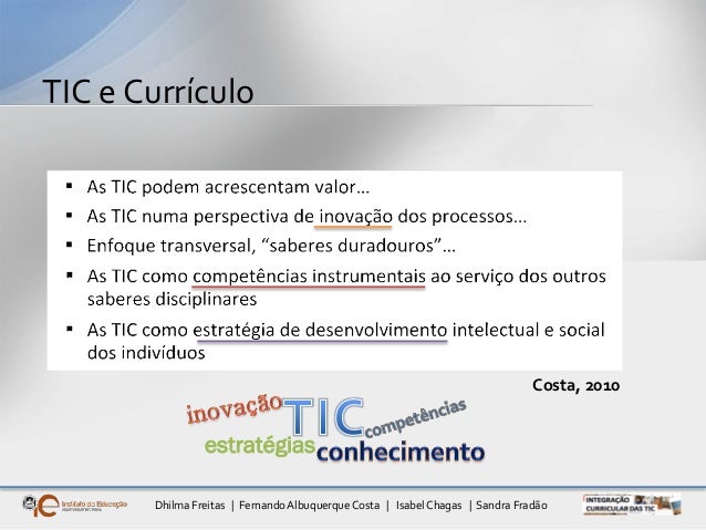 3. 3. Dhilma Freitas | FernandoAlbuquerqueCosta | Isabel Chagas | Sandra Fradão Costa, 2010 TIC e Currículo estratégias