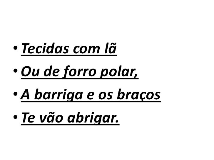 10. 10. Tecidas com lã Ou de forro polar, A barriga e os braços Te vão abrigar.