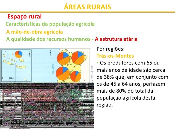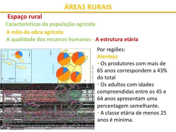 1. 1. ÁREAS RURAIS Espaço rural Características da população agrícola A mão-de-obra agrícola A população que se dedica às actividades agrícolas diminuiu drasticamente nas últimas décadas do século XX.  1950 - mais de 50% da população activa trabalhava no sector primário  2001- esse valor passa para 6,6%. Factor explicativo: • Mecanização dos meios de produção