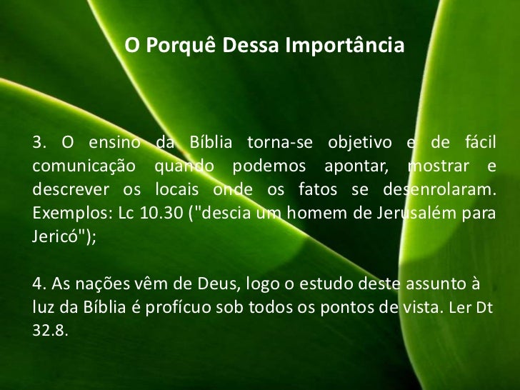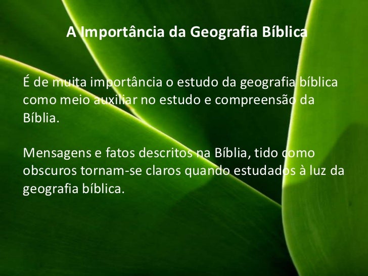 A Importância da Geografia BíblicaÉ de muita importância o estudo da geografia bíblicacomo meio auxiliar no estudo e compr...