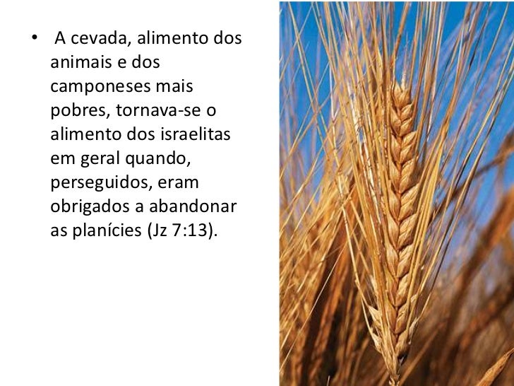 111. 111. • A cevada, alimento dos animais e dos camponeses mais pobres, tornava-se o alimento dos israelitas em geral quando, perseguidos, eram obrigados a abandonar as planícies (Jz 7:13).