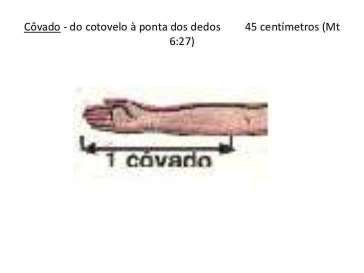 120. 120. Côvado - do cotovelo à ponta dos dedos 45 centímetros (Mt 6:27)