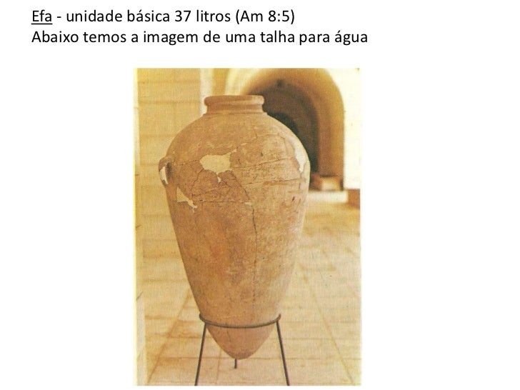 122. 122. Efa - unidade básica 37 litros (Am 8:5)Abaixo temos a imagem de uma talha para água