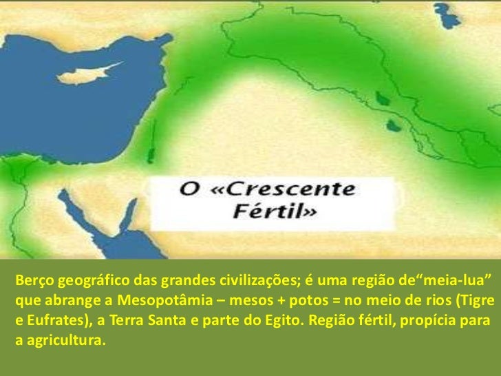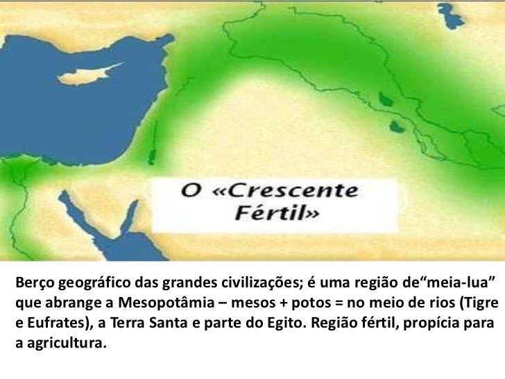 Berço geográfico das grandes civilizações; é uma região de“meia-lua”que abrange a Mesopotâmia – mesos + potos = no meio de...