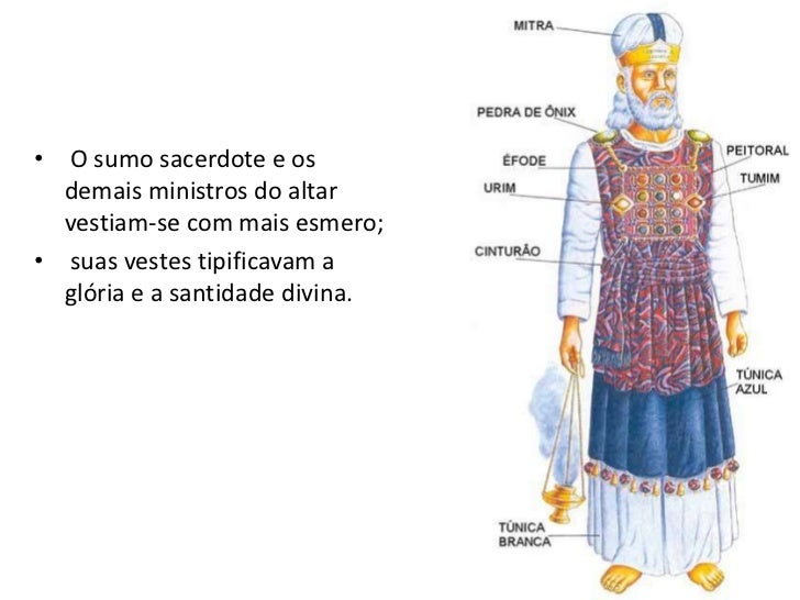 134. 134. • O sumo sacerdote e os demais ministros do altar vestiam-se com mais esmero;• suas vestes tipificavam a glória e a santidade divina.