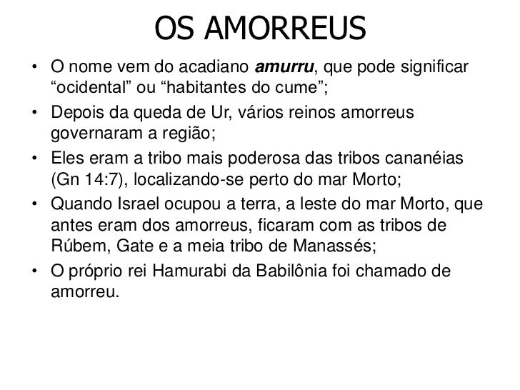 OS AMORREUS• O nome vem do acadiano amurru, que pode significar  “ocidental” ou “habitantes do cume”;• Depois da queda de ...