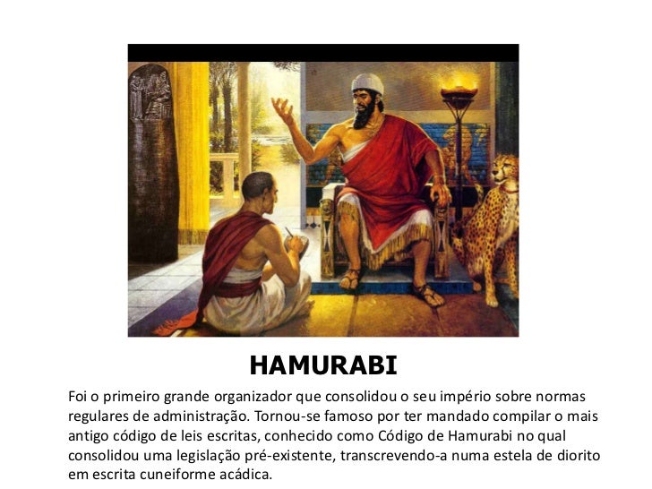HAMURABIFoi o primeiro grande organizador que consolidou o seu império sobre normasregulares de administração. Tornou-se f...