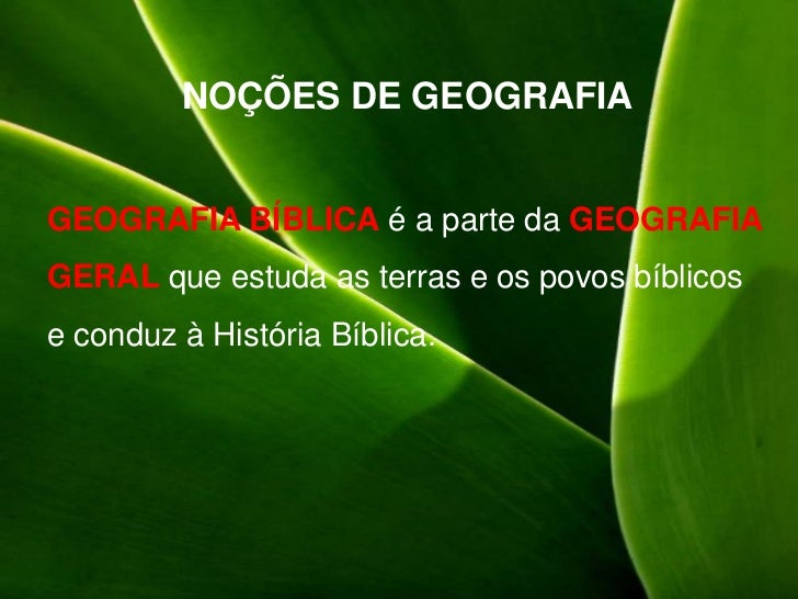 NOÇÕES DE GEOGRAFIAGEOGRAFIA BÍBLICA é a parte da GEOGRAFIAGERAL que estuda as terras e os povos bíblicose conduz à Histór...