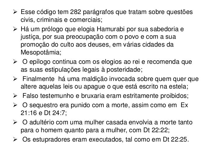 Esse código tem 282 parágrafos que tratam sobre questões  civis, criminais e comerciais; Há um prólogo que elogia Hamur...