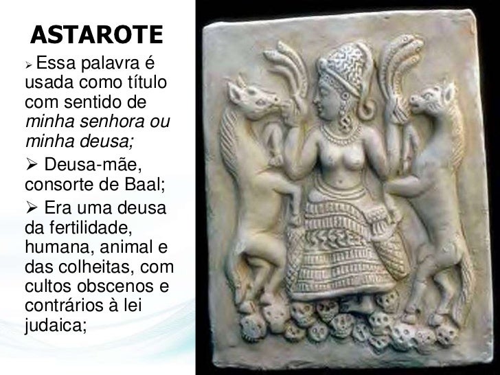 ASTAROTE Essa palavra éusada como títulocom sentido deminha senhora ouminha deusa; Deusa-mãe,consorte de Baal; Era uma ...