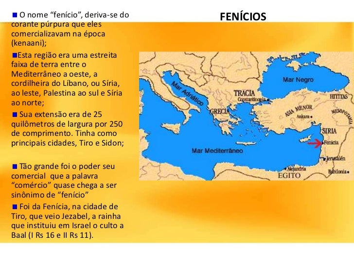 48. 48. O nome “fenício”, deriva-se do FENÍCIOScorante púrpura que elescomercializavam na época(kenaani); Esta região era uma estreitafaixa de terra entre oMediterrâneo a oeste, acordilheira do Líbano, ou Síria,ao leste, Palestina ao sul e Síriaao norte; Sua extensão era de 25quilômetros de largura por 250de comprimento. Tinha comoprincipais cidades, Tiro e Sidon; Tão grande foi o poder seucomercial que a palavra“comércio” quase chega a sersinônimo de “fenício” Foi da Fenícia, na cidade deTiro, que veio Jezabel, a rainhaque instituiu em Israel o culto aBaal (I Rs 16 e II Rs 11).