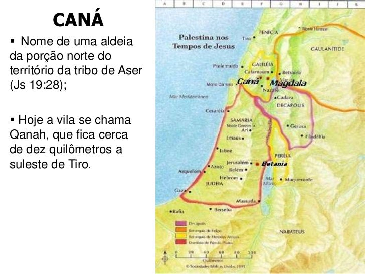 59. 59. CANÁ Nome de uma aldeiada porção norte doterritório da tribo de Aser(Js 19:28); Hoje a vila se chamaQanah, que fica cercade dez quilômetros asuleste de Tiro.