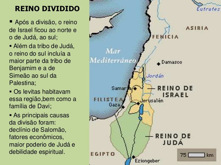 REINO DIVIDIDO Após a divisão, o reinode Israel ficou ao norte eo de Judá, ao sul; Além da tribo de Judá,o reino do sul ...
