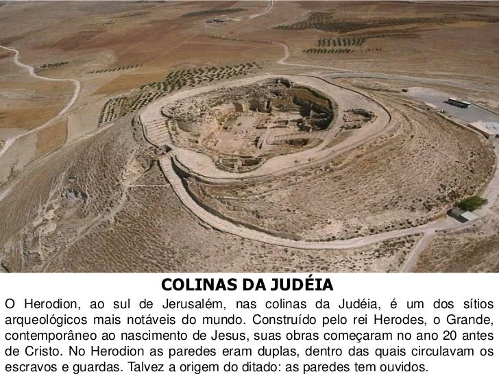 COLINAS DA JUDÉIAO Herodion, ao sul de Jerusalém, nas colinas da Judéia, é um dos sítiosarqueológicos mais notáveis do mun...