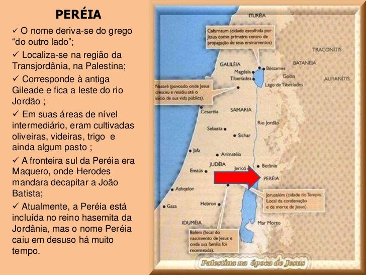 PERÉIA O nome deriva-se do grego“do outro lado”; Localiza-se na região daTransjordânia, na Palestina; Corresponde à ant...