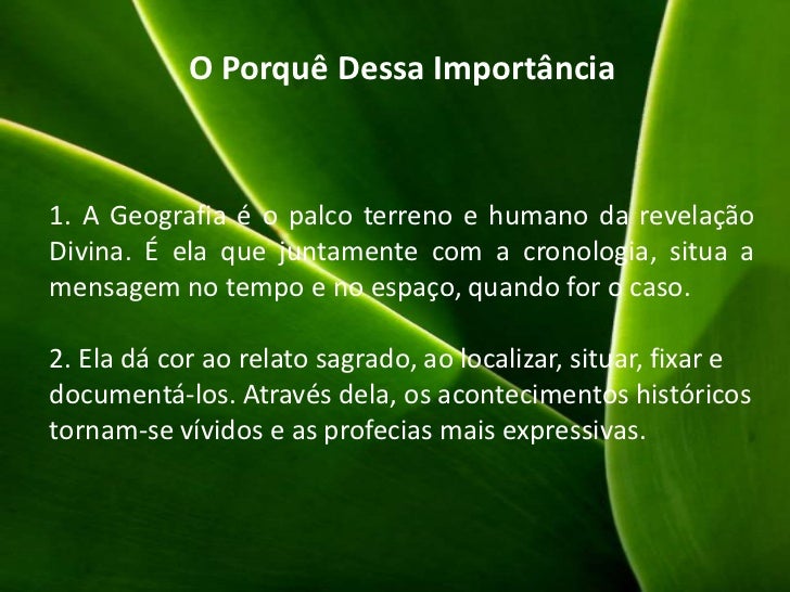 O Porquê Dessa Importância1. A Geografia é o palco terreno e humano da revelaçãoDivina. É ela que juntamente com a cronolo...
