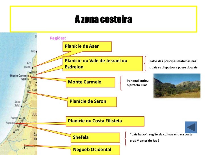A zona costeiraRegiões:       Planície de Aser       Planície ou Vale de Jesrael ou                      Palco das princip...