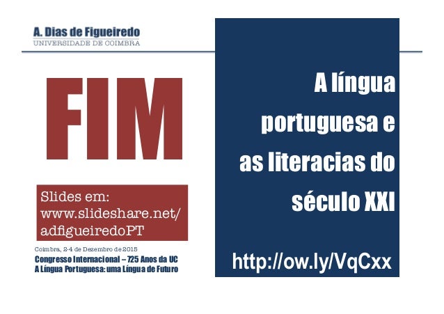 Apresentação plenária no Congresso "A Língua Portuguesa: Uma Língua de Futuro", de celebração dos 725 da fundação da Universidade de Coimbra