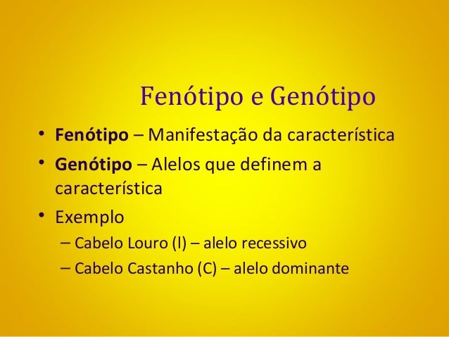 14. 14. Fenótipo e Genótipo• Fenótipo – Manifestação da característica• Genótipo – Alelos que definem acaracterística• Exemplo– Cabelo Louro (l) – alelo recessivo– Cabelo Castanho (C) – alelo dominante