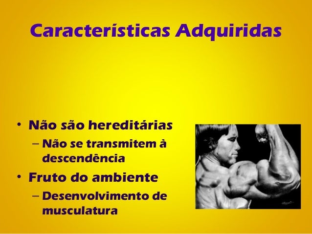 2. 2. Características Adquiridas• Não são hereditárias– Não se transmitem àdescendência• Fruto do ambiente– Desenvolvimento demusculatura